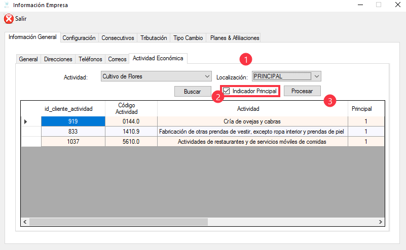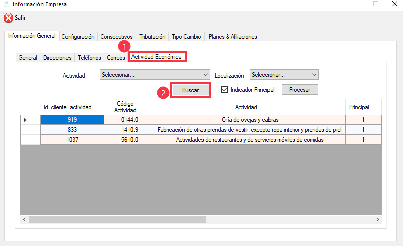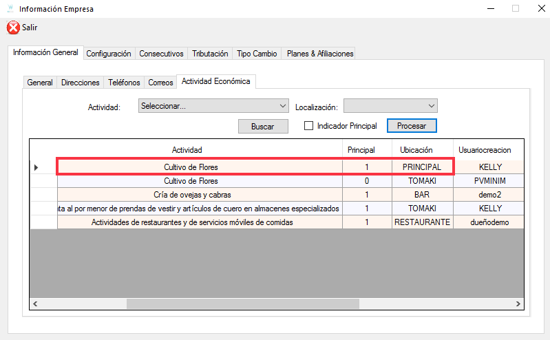 Para agregar una actividad económica principal debe ingresar a Utilidades > Configuraciones > Parámetros Sistema > parámetros Empresa.