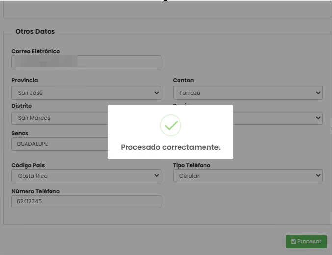 Después de dar clic en procesar, aparecerá el mensaje: “Procesado correctamente.