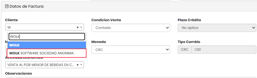Cierre esa pantalla y busque el cliente recién creado en el campo Cliente.