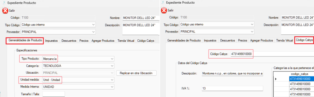 IMPORTANTE: Es indispensable que la información en Generalidades del Producto sea coherente con el Código Cabys para evitar que Hacienda rechace sus comprobantes.