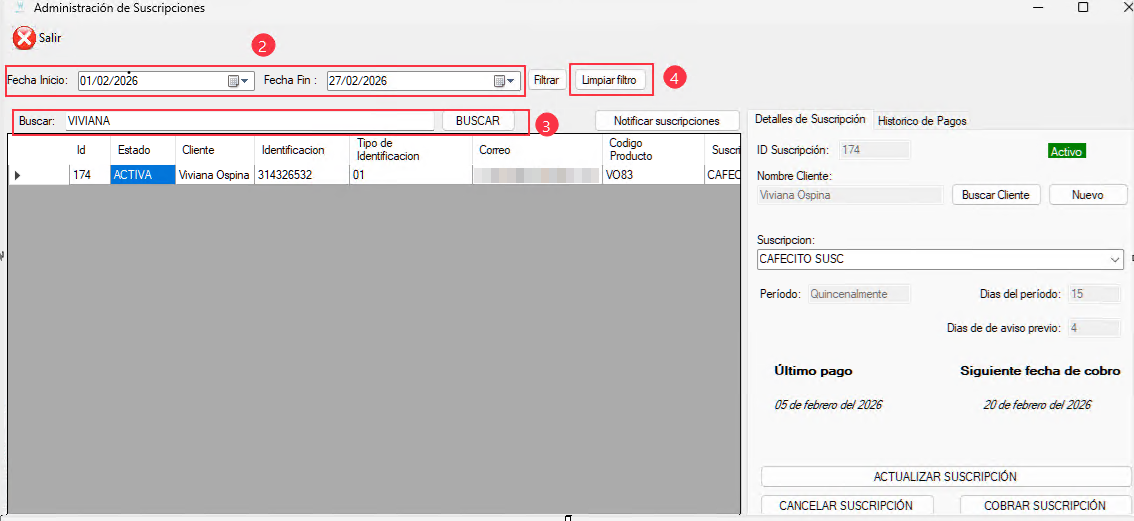 1. Ingresar al módulo de Cliente y seleccionar la opción Gestionar Suscripciones.