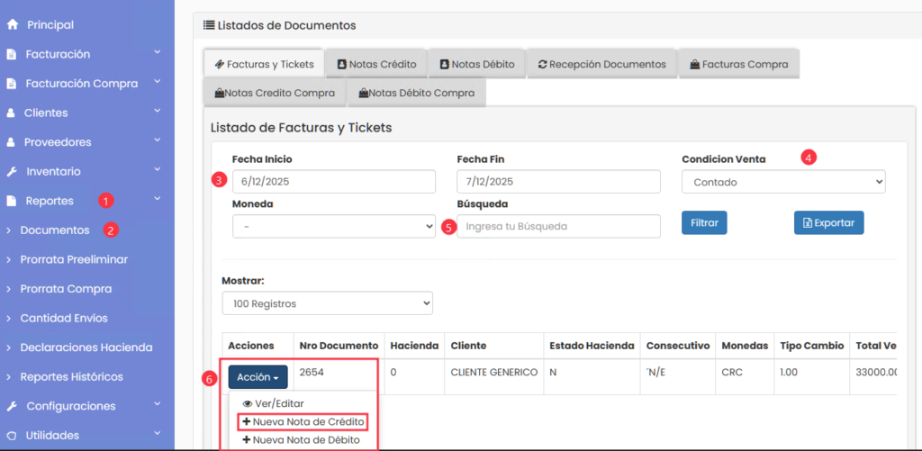 CREAR NOTA DE CRÉDITO PARCIAL | WEB