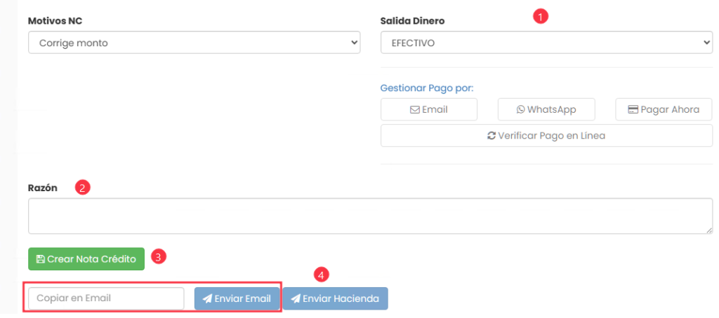 Hacer clic “Enviar Email“ (En caso de querer enviar la nota de crédito por correo al cliente o a otro correo escribiéndolo primero en “Copiar en Email“)