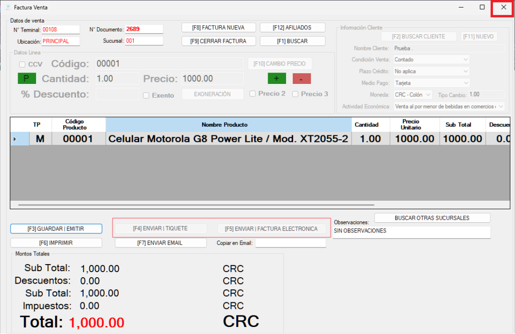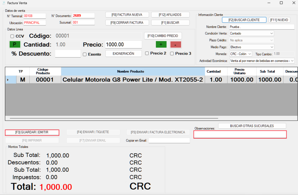 “Observaciones” si necesitamos hacer alguna anotación, la podemos escribir aquí. No es obligatorio para generar una factura