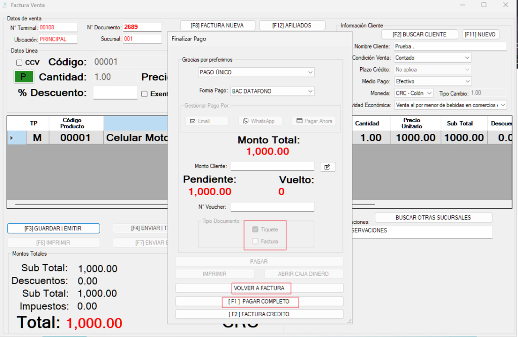 Luego, elija “Pago completo” o presione la tecla F1.