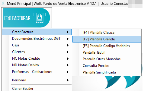 * Seleccionamos “Planilla Grande” o presionamos F2 como acceso rápido.