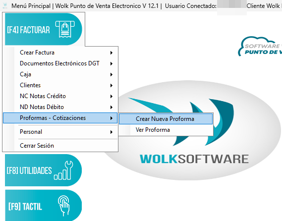 Ingresamos al sistema. En la parte de módulo de facturación vamos a seleccionar la opción de “Proformas-Cotizaciones” – “Crear Nueva Proforma”