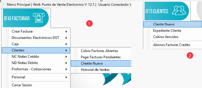Hacer clic en el menú [F7] CLIENTE – Cliente Nuevo.