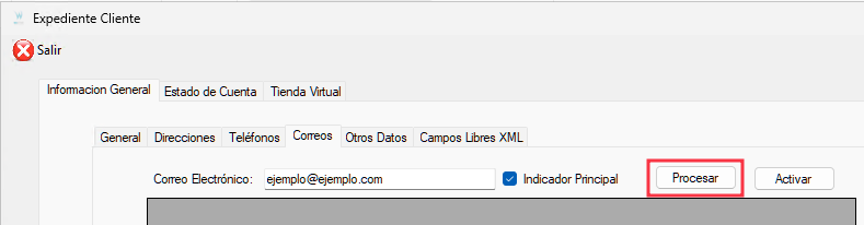 NOTA: Asegúrese de no incluir espacios al inicio o al final del correo electrónico. Estos espacios adicionales pueden provocar que Hacienda rechace sus documentos al momento de generarlos.