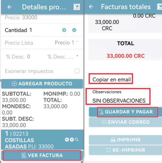 Una vez que haya agregado el producto, haga clic en VER FACTURA para ver el total y continuar.